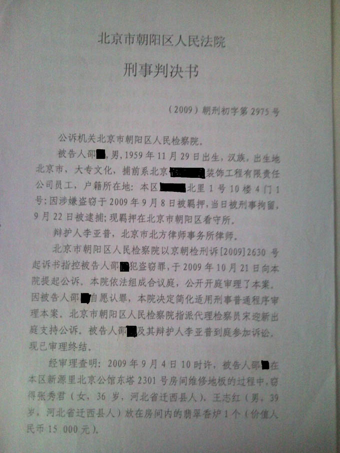 邵某某盗窃数额巨大判处缓刑案(点击查看判决) |