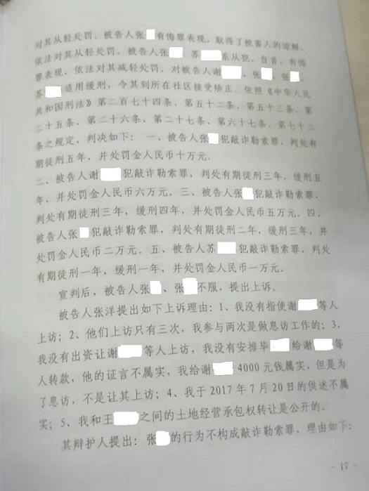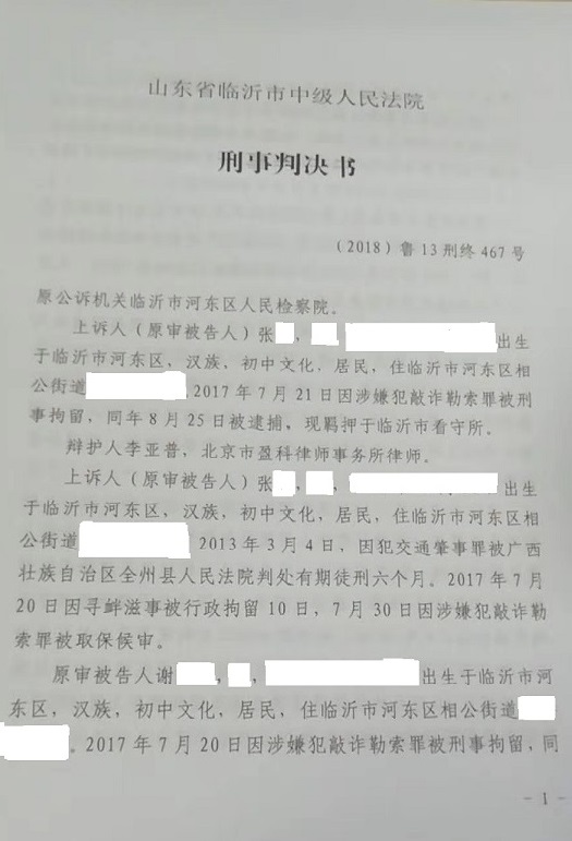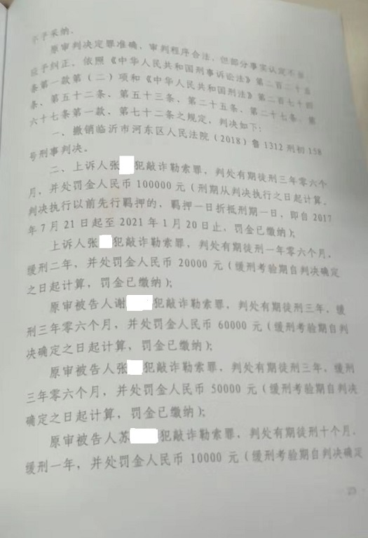 张某敲诈勒索一审判处5年,二审改判3年半(点击查看判决)